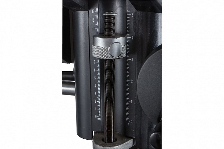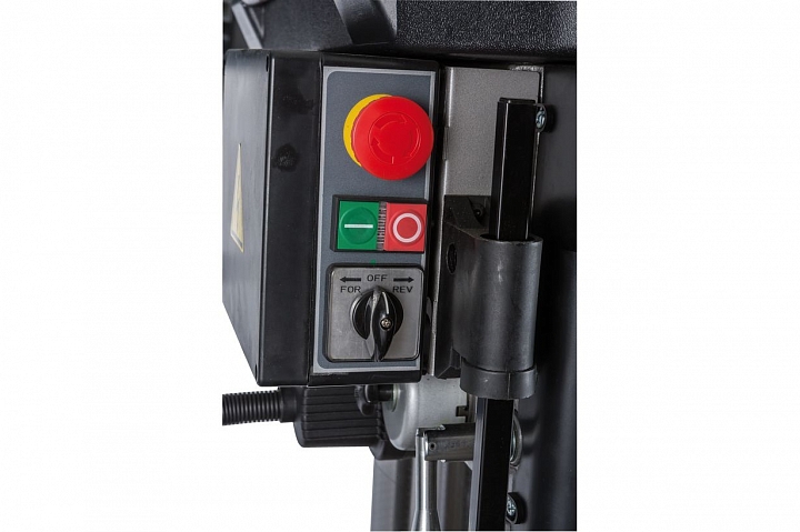 Сверлильно-фрезерный станок выполняет широкий спектр операций. Максимально допустимый диаметр сверления составляет 30 мм. При выполнении фрезерных работ допускается работа концевыми фрезами с максимальным диаметром 20мм и фрезами для торцевого фрезерования с максимальным диаметром 75мм. Модель оснащена шпинделем с конусом МК3, зажимная тяга которого составляет М12. Для повышения жесткости фиксации опора шпинделя оборудована группой конических подшипников. Ход пиноли составляет 125мм. Для повышения качества обработки и повышения производительности работ, на станке установлена функция микроподачи шпинделя. Технологический процесс контролируется механической регулировкой вылета шпинделя.