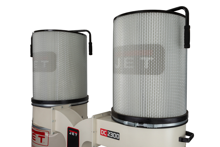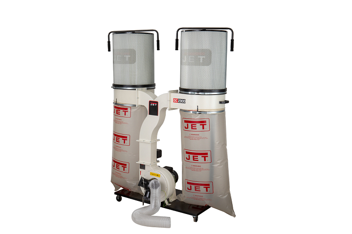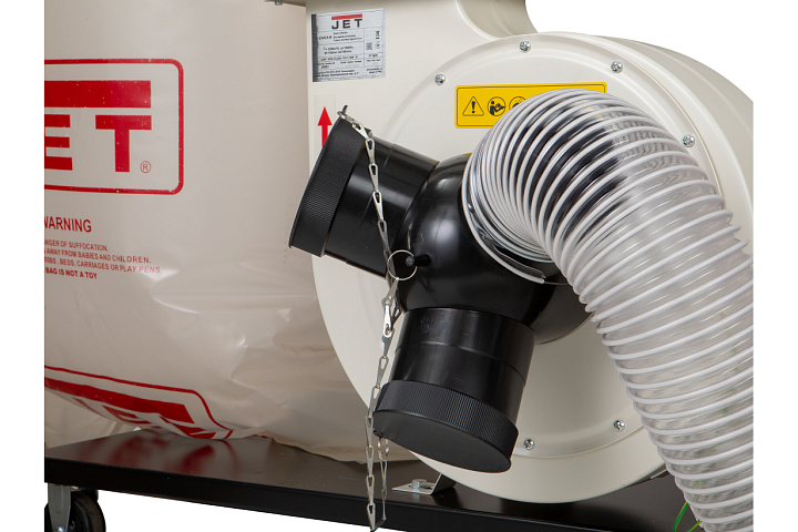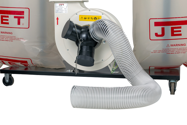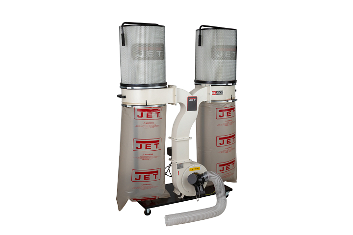 JET DC-2300СК-T — высокопроизводительная вытяжная установка с двумя ёмкостями для мусора, способная обслуживать до трех деревообрабатывающих станков одновременно (оптимально — рейсмусовые, фуговальные, фрезерные и прочие, производящие крупную фракцию отходов в большом количестве). Укомплектована мощным надежным двигателем, подходящим для продолжительного режима эксплуатации, «улиткой» и крыльчаткой из стали, которые не повреждаются при прохождении сучков и щепок. Для подключения рукавов предусмотрено три патрубка диаметром 100 мм; если разветвитель снять, то можно подключить один рукав большого (150 мм) диаметра.