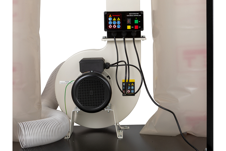 Установка относится к профессиональному классу и сделана с расчетом на продолжительную интенсивную эксплуатацию: у нее надёжный асинхронный двигатель, металлическая крыльчатка, способная пропускать сучки и щепки без риска ее повреждения. Емкий пылесборник.